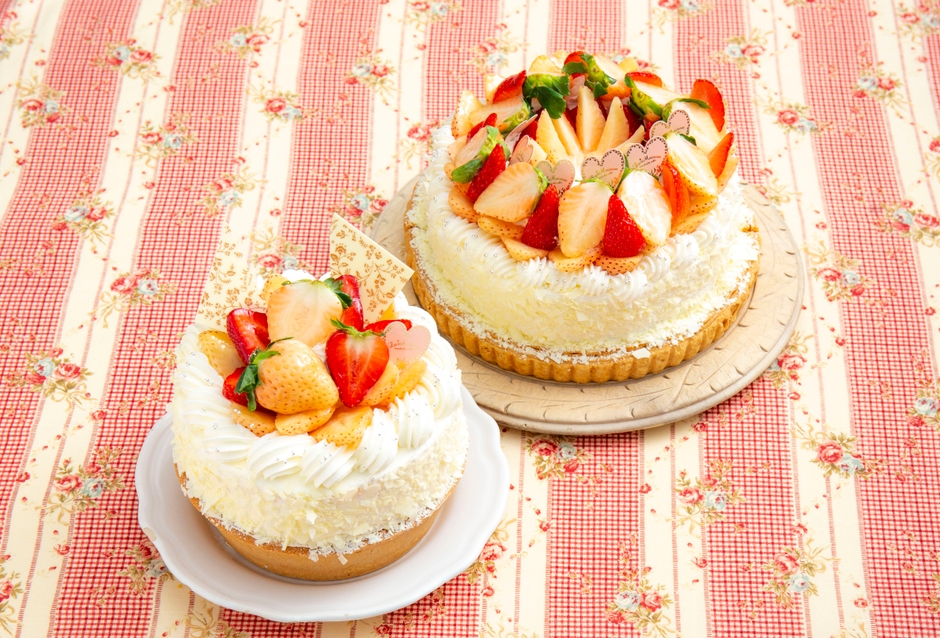 甘くやさしい香りの白いちごと大粒のあまおうを贅沢に飾ったタルト。