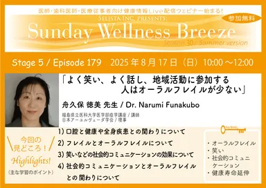 《医師・歯科医師・薬剤師向け》 無料オンラインセミナー8/17(日)朝10時開催 『よく笑い、よく話し、地域活動に参加する人は オーラルフレイルが少ない』 舟久保 徳美 先生(福島県立医科大学医学部疫学講座/講師)
