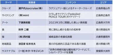 今年度最も魅力的だった観光コンテンツを表彰する 「せとうちDMOアワード」の受賞者が決定!