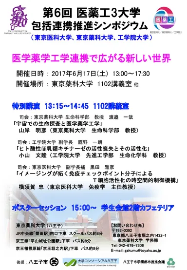 医学・薬学・工学で教育・研究連携 3大学包括連携推進シンポジウムを6月17日(土)に開催