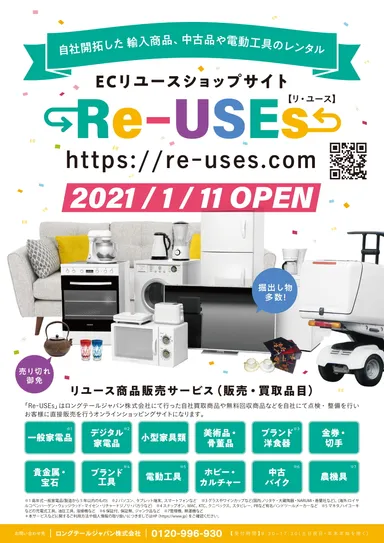遺品整理やごみ屋敷などのお部屋の片付けサービス事業を中心に各種家電品やバイクなどの各種無料回収事業、HDDやSSDなどの電子記憶媒体をお客様の指定先へ出張し、目の前で破壊する物理破壊代行事業、リサイクル商品の販売やレンタル工具をネットで貸し出すEC事業など多方面に運営する総合サービス事業の会社です