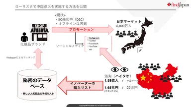 FindJapanのMissionは『中国新規流通NO1』です。日本が持つ差別化された商品を発見し多様化した中国マーケットに効率よく流通させる仕組みを構築します。
