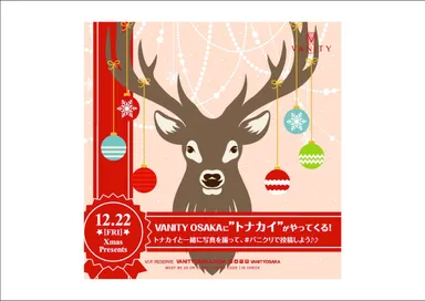 大阪市内に本物のトナカイが出現!Xmasイベント12/22開催 “華やかな非日常”を提案するクラブ「Vanity Osaka」にて