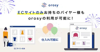 orosyは、オンラインブランドを中心とした各種商品のサプライヤー(製造元や保有元)と、高感度な商品の販売を希望するバイヤー(小売事業者)のマーケットプレイスです。