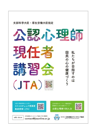 心理専門職の国家資格取得を支援! 文部科学大臣・厚生労働大臣指定 「公認心理師現任者講習会(JTA)」 3月東京・神奈川、京都にて開催