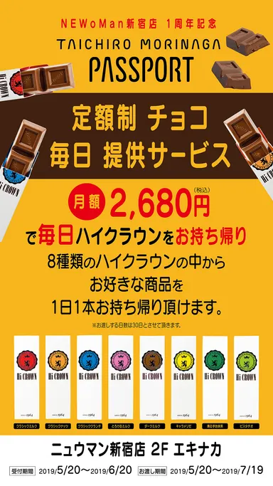 森永製菓、毎日チョコを持ち帰りできる定額パスポートを 『TAICHIRO MORINAGA』NEWoMan 新宿店にて限定販売