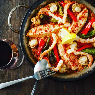 パエリアをつまみに、お酒を楽しむ。