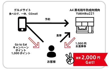 A4黒毛和牛熟成肉焼肉 Yakiniku221(京都市上京区)が 外食業界の復活支援でGo To Eat 倍返しキャンペーンを開催