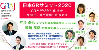 地域課題解決にフォーカスした良質で戦略的な官民連携を進める 「日本GRサミット2020 ~進むDX。官民連携2.0の夜明け~」 12月20日(日)オンライン開催!
