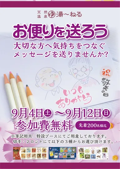 新習志野駅前の天然温泉でおじいちゃん・おばあちゃんへの 「敬老の日メッセージ」無料送付キャンペーンを9月4日~12日実施