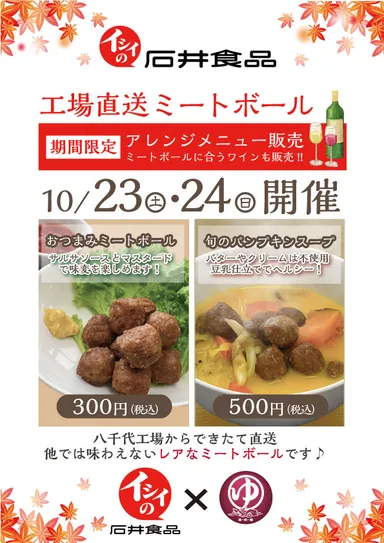 石井食品×天然温泉 湯~ねる 直営店・通信販売限定のミートボールを使った アレンジメニューを10月23日・24日の2日間限定販売
