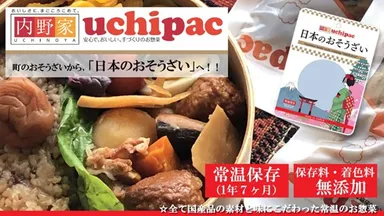 国産の原材料にこだわり抜いた常温保存(1年7か月)、 保存料着色料無添加のお惣菜 内野家uchipac「日本のおそうざい」 Makuakeにて先行予約販売を開始!