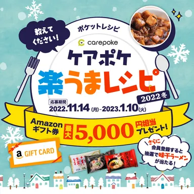 ケアポケ楽うまレシピ2022冬プレゼントキャンペーン開催! 公式Twitterをフォロー&引用RTして Amazonギフト券をゲットしよう!