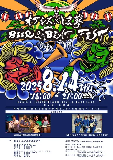 全会場入場無料! 2025年8月14日(木)世界遺産である新潟県の佐渡島で、 観客全員参加型の新感覚フェスティバル 「オアシス×しま夢 BEER & BEAT FEST.2025」を開催