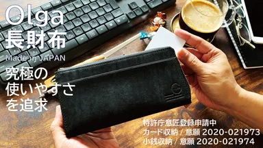 【すべてのカードが一目瞭然!】 徹底的に使いやすさにこだわった究極の長財布 ・Olga・ 特許庁意匠登録申請中の仕様を2つも併せ持つ 極上の使い心地です!