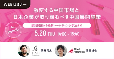 アライドアーキテクツ、一般社団法人日本美粧協会が化粧品・美容系企業向けセミナー「激変する中国市場と日本企業が取り組むべき中国展開施策」を5月28日に開催