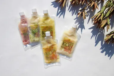 カットフルーツ入りの甘酒「Japanese Superfood KOJI」を 3月18日より販売開始 ~持ち運びに便利なパウチタイプのパッケージ~