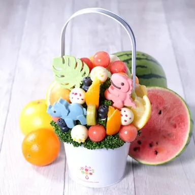フルーツブーケ専門店より、キュートな恐竜デザインが登場! お子さまへのプレゼントにおすすめの新感覚フルーツギフト