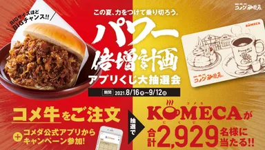 【コメダ珈琲店】\この夏、力をつけて乗り切ろう/ 『コメ牛』を食べて プリペイドカードKOMECA(コメカ)を当てよう! 「パワー倍増計画」第2弾 “コメ牛アプリくじ大抽選会”開催決定!!