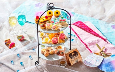 『夏まつりアフタヌーンティー』金魚や水ヨーヨー、花火など夏の風物詩を詰め込んだスイーツが勢ぞろい! 浴衣で来店された方には“かき氷”をプレゼント