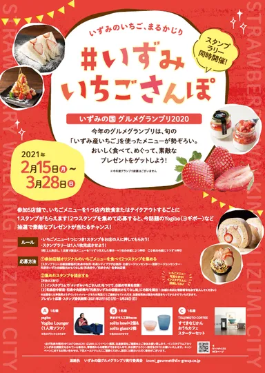 和泉市産いちごを使ったメニューを食べて、めぐる 「#いずみいちごさんぽ いずみの国グルメグランプリ2020」 スタンプラリー同時開催