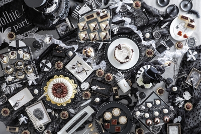“白×黒”デザート&軽食約20種類が食べ放題!『モノクロ・ゴシック スイーツパーティー』お客様毎のテーブルにスイーツが並び、安心・安全に楽しめる“NO密”Myテーブルブッフェ