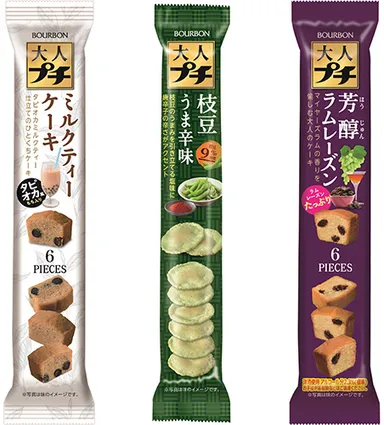 ブルボン、ちょっと上質、プチ贅沢なプチシリーズ 大人プチに“ミルクティーケーキ”と“枝豆うま辛味”が 3月17日(火)に新登場!