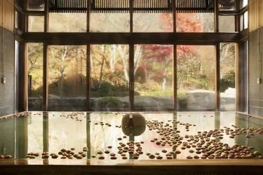 軽井沢星野エリア(長野県・軽井沢町) 紅葉を眺めながら、りんごが浮かぶ湯につかる 「りんご湯」開催 開催期間:2018年10月16日〜19日、11月4日~7日
