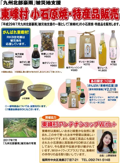 九州北部豪雨による被災地支援イベント開催! 福岡・東峰村の特産品の販売を1月6日~1月8日で実施