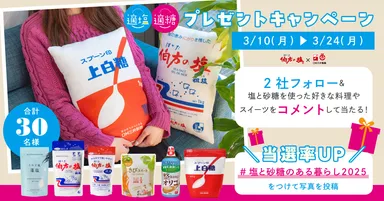 「伯方の塩」と「スプーン印・ばら印のお砂糖」が ふかふかクッションに! Instagramでプレゼントキャンペーンを開催 砂糖の日、3月10日(月)からスタート!