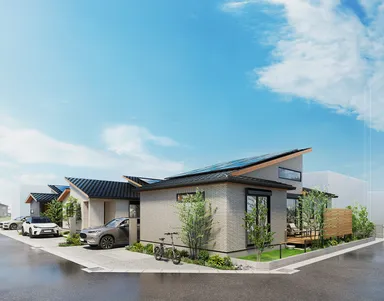 ZEH住宅の先進ワンフロアスタイル 全25棟 「ウィザースガーデン印西牧の原」 美しさが続く外壁タイル貼り平屋の街、第1期:6棟が完成
