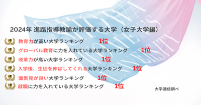 昭和女子大学が6項目で全国女子大学 第1位 2024年「進路指導教諭が評価する大学」