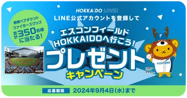 エスコンフィールドHOKKAIDOの日ハム観戦ペアチケットや グッズが当たるプレゼントキャンペーンを9/4まで開催!