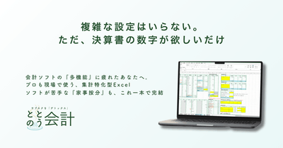 「会計ソフトの機能を使いこなせない方向けのシンプル設計」サブスク会計ソフトに疲れた小規模の個人事業者へ。マクロ不使用・買い切りのExcel『ととのう会計』2月16日提供開始