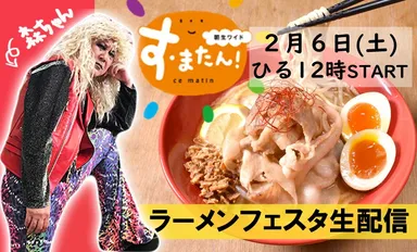 【YouTubeLive 配信】 2月6日(土)12:00スタート す・またん!presents 「森ちゃんのラーメンフェスタ リモート」 ファン感謝祭ライブ配信!