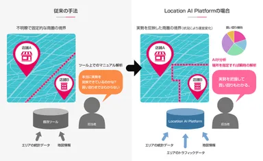 位置情報データ活用クラウド型プラットフォーム 「Location AI Platform(TM)」、AIを活用し 商圏分析や買い回り分析を高速に視覚化する新機能を提供開始 ~高精度の商圏分析や実勢商圏の把握がスピーディに可能~
