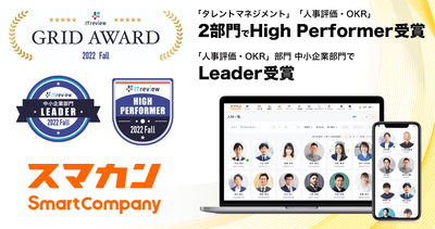 人事評価と目標管理の「スマカン」、ITreview Grid Award 2022 Fallの2部門で受賞