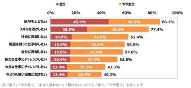 「職場に求める理想とキャリアアップの矛盾点」キャリアアップの設問において『給与を上げたい』と選択したが 『今より高い役職には就きたくない』女性が62%存在するとの調査結果に。