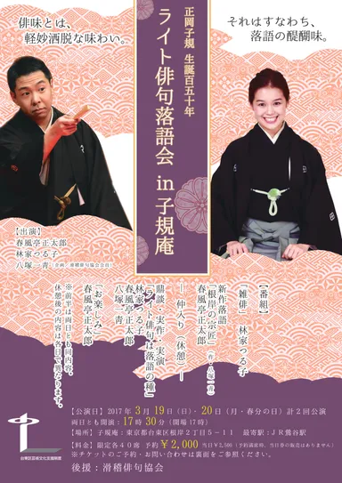 正岡子規生誕150年「落語」と「俳句」のコラボイベント 東京・台東区で「ライト俳句落語会 in 子規庵」 3月19日(日)・20日(月・祝)に開催!