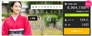 Makuake公開から3日目で600%達成!洋服のように3分で着られる 本格着物、12月17日まで先行予約販売を実施