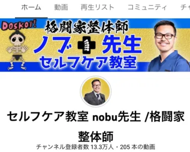 「セルフケア教室nobu先生/格闘家整体師」 2022年1月にYouTubeチャンネル登録者数13万人を達成し、 TikTokでも「コロナワクチン注射痛み解消」が300万再生を突破