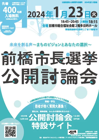 2024年前橋市長選挙にむけた公開討論会を 2024年1月23日(火)に開催!