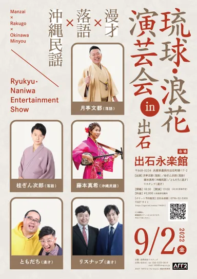 沖縄と大阪の演芸が集まるイベント 「琉球・浪花演芸会 in 出石」を 出石永楽館にて9月2日(金)に開催