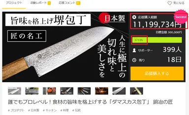 支援1,100万円(3,700%)を達成!! 大阪堺のダマスカス包丁【鍛冶の匠】をMakuakeにて先行販売 大阪堺の職人が作り出した旨味を格上げする 【究極のダマスカス包丁】