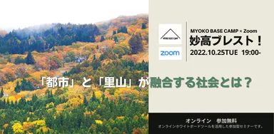 <MYOKO BASE CAMP×Zoom> 妙高ブレスト!Vol.1 - 「都市」と「里山」が融合する社会とは? 10月25日に参加型オンラインセミナーを開催