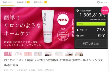 Makuake先行販売で目標の1,305%を達成! 約130万円を売り上げた 福岡発常識破りの「オールインワンジェル」
