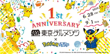 開業1周年を迎え「東京グルメゾン」と 「ポケモンストア 東京駅店」がコラボレーション! ピカチュウに会えるイベントやフォトスポット、 オリジナルグッズのほか 東京グルメゾン1周年限定メニューなど続々実施!