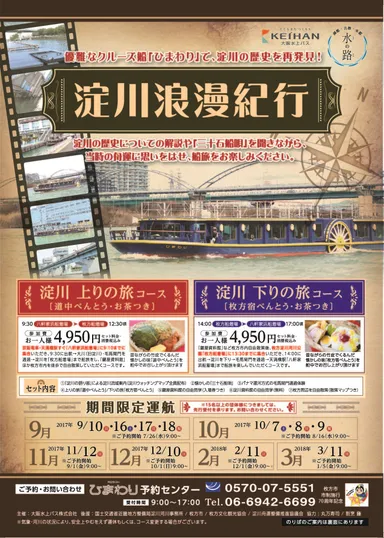 ~天満橋・八軒家浜と枚方を結ぶ定期観光船~ まちの賑わいと連携した舟運「淀川浪漫紀行」を、2019年度は増便して運航