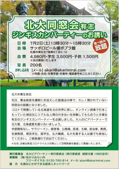 北海道大学同窓会ジンギスカンパーティー開催のお知らせ