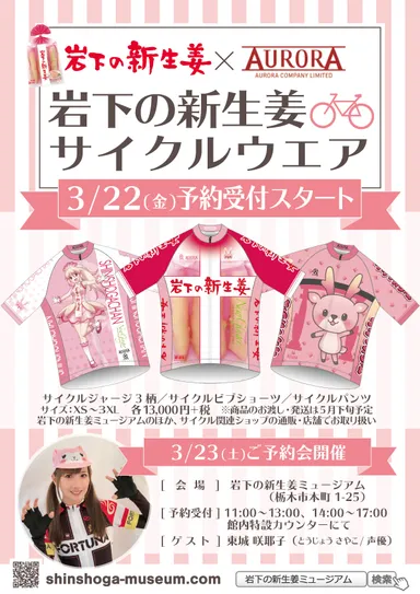 「岩下の新生姜」モチーフのサイクルウエア3/22予約受付開始 3/23新生姜ミュージアムで予約会開催、声優・東城咲耶子さん来場 ~パッケージ・イワシカ・萌えキャラの3柄~